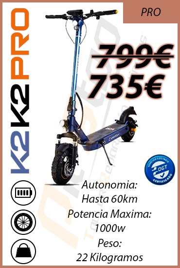 El SmartGyro K2 certificado es un patinete eléctrico ágil y maniobrable, ideal para desplazamientos urbanos. Cuenta con un motor de 500W (800W máxima), una velocidad máxima de 25 km/h y una autonomía de hasta 50 km.